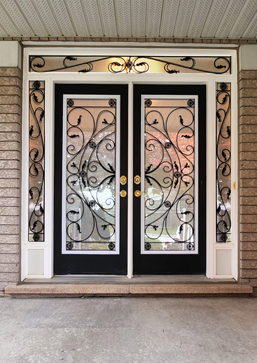 Juliana Wrought Iron For double door installations.Available panel sizes: 22X36, 22X48, 22X64, 22X67, 22X80Transoms: 31X10, 64X10Other sizes can be custom made. GO BACK